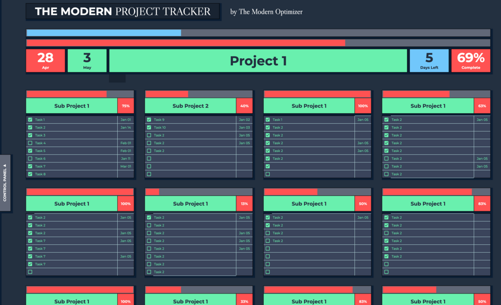 Are you struggling to manage your infinite tasks and projects on the path to achieve your goals? The Modern Project Tracker is an elegantly designed solution to help you organize and track the many to-do's you're juggling. You've never seen a Project Tracker quite like this!